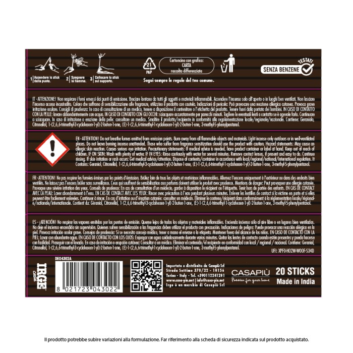 BFT INCENSO ROSA ROSSA 20 STICK