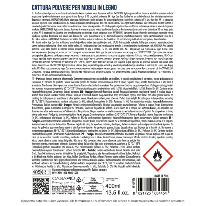 ABI SPRAY CATTURAPOLVERE MOBILI LEGNO CERA D'API 400 ML